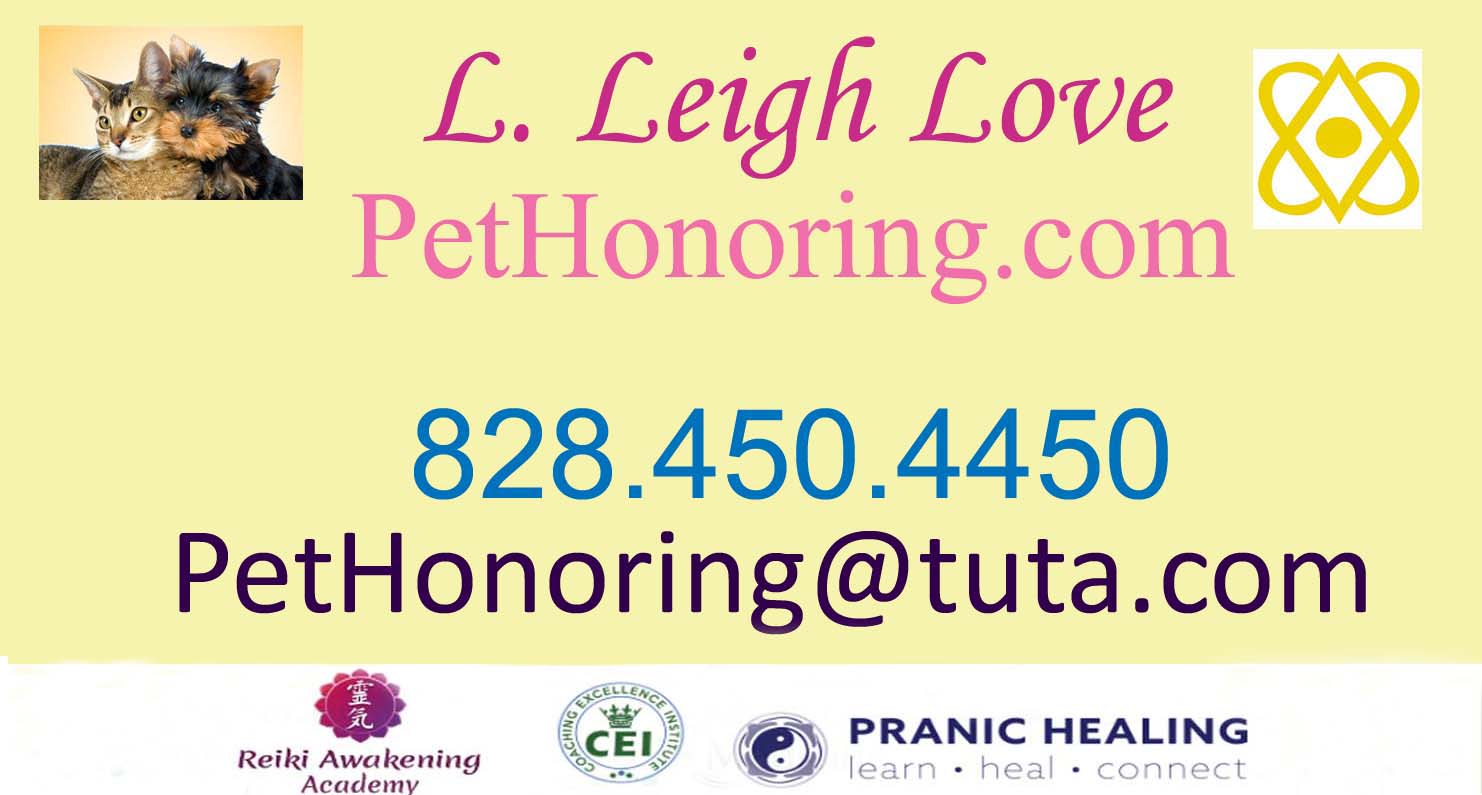 L. Leigh Love offers Pet Honoring and Animal Communication sessions to honor our pets since 2008. She is proud to be a pioneer in this area. She is the author of the award-winning children’s book, ‘Roly-Poly and the Light’ and a new pet storybook, “Light of My Life, Love on Your Journey’. Author website is LLeighLove.com and Spiritual website BrightStarStudio.net